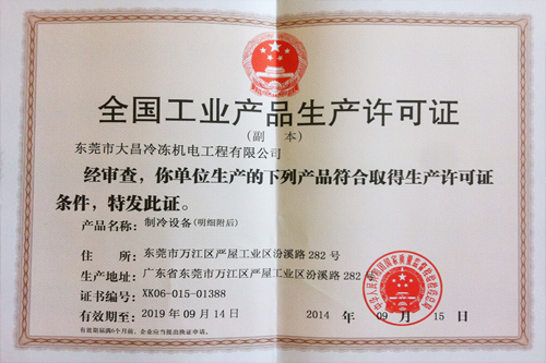我公司作为广东省第一家获得生产许可证的冷库保温板生产企业,于2013年7月到期,由于现在国家对于环保的重视,对于库板生产企业有了更高的要求,经过我司的努力,于2014年9月换证成功,标志着我司的生产工艺水平又上了一个台阶。 |